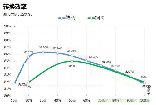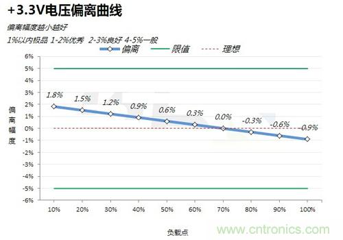 首先我們隨機選擇了一款電源,在沒有使用延長線的時候,分別測試電源的轉換效率、電壓偏離,然後接上延長線,同時測試數據進行對比。