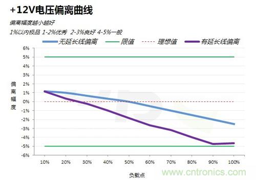 這是一款入門級電源的整體表現,效能就是通牌水準,而電源電壓偏離也是處於一個比較好的水平,下麵我們接上延長線去測試。