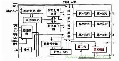 SA4828原理框圖如圖3所示。它接收並存儲微處理器初始化命令和控製命令,主要由總線控製、地址/數據總線、存儲器、控kong製zhi寄ji存cun器qi組zu成cheng,以yi控kong製zhi字zi的de形xing式shi實shi現xian。三san相xiang輸shu出chu控kong製zhi電dian路lu的de每mei相xiang輸shu出chu控kong製zhi電dian路lu由you脈mai衝chong取qu消xiao和he脈mai衝chong延yan時shi電dian路lu構gou成cheng,脈mai衝chong取qu消xiao將jiang脈mai衝chong寬kuan度du小xiao於yu取qu消xiao時shi間jian的de脈mai衝chong去qu掉diao,延yan時shi電dian路lu保bao證zheng死si區qu間jian隔ge,以yi防fang止zhi在zai轉zhuan換huan瞬shun間jian橋qiao路lu開kai關guan器qi件jian出chu現xian直zhi通tong現xian象xiang。