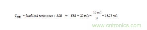 如果電源輸出阻抗在LC電路諧振頻率上高於 Zpeak,必須提高電容,以降低儲能電路諧振頻率,直至滿足上述條件。