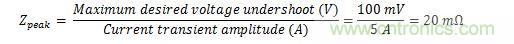 根據下麵的表達式,確定負載導線網絡的指定峰值阻抗和旁路電容: