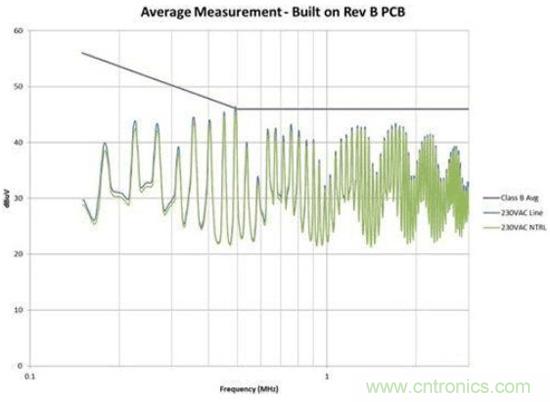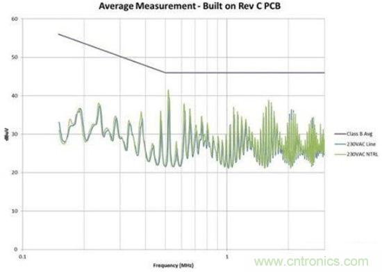 圖4是修改後的效果圖。我們在故障點位置為EMI規範獲得了大約6dB的裕量。此外,我們還顯著減少了總體EMI簽qian名ming。所suo有you這zhe些xie改gai善shan都dou僅jin僅jin是shi因yin為wei布bu局ju的de調tiao整zheng,並bing未wei改gai變bian電dian路lu。如ru果guo您nin的de電dian路lu具ju有you高gao電dian壓ya開kai關guan並bing使shi用yong了le屏ping蔽bi距ju離li,您nin需xu要yao非fei常chang小xiao心xin地di對dui其qi進jin行xing控kong製zhi。