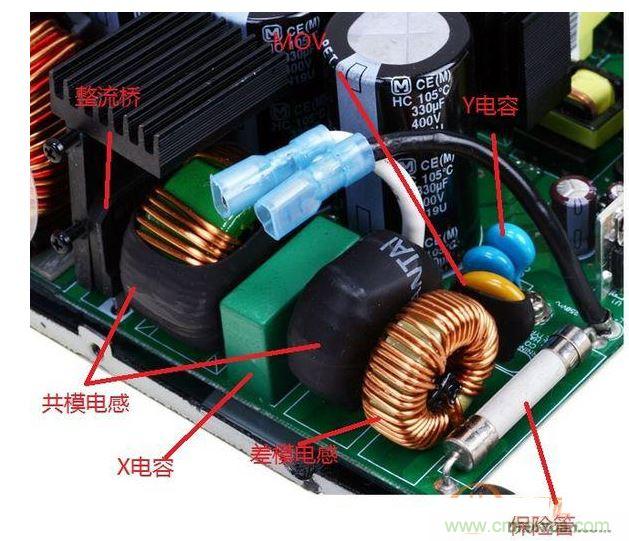 要讀懂這段話,得先知道EMI濾波電路裏有什麼,作用是什麼。