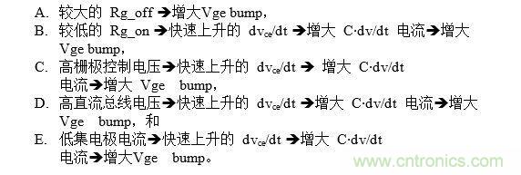 因素C、D和E與工作條件相關。為了最小化穿通電流和產生的“Vge bump”,應該在最壞的C、D、E條件下考慮因素A和B。