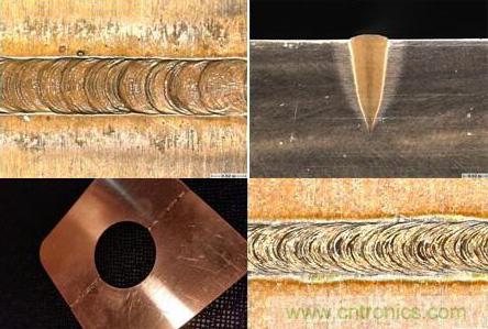 (圖片說明:510係列銅焊接縫(a)及其橫截麵(b),以及純101係列銅焊接接縫(c)與航節後的采樣部分(d)。)