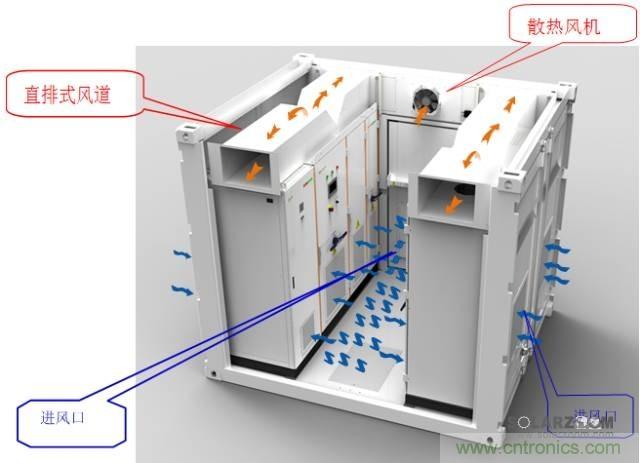 陽光電源箱式逆變房將逆變器、直流櫃、通訊單元集成於一體,采用簡潔的分段直排式風道,風道內不含風機,零損耗,免維護。風道長度僅1m,壓ya力li損sun失shi小xiao,風feng機ji處chu於yu最zui佳jia效xiao率lv狀zhuang態tai。逆ni變bian器qi在zai工gong作zuo時shi,大da部bu分fen熱re量liang通tong過guo風feng道dao排pai出chu集ji裝zhuang箱xiang外wai,僅jin有you少shao量liang熱re量liang通tong過guo輻fu射she傳chuan到dao箱xiang體ti內nei部bu,內nei部bu空kong氣qi吸xi收shou熱re量liang後hou向xiang頂ding部bu流liu動dong,再zai由you集ji裝zhuang箱xiang頂ding部bu排pai風feng扇shan排pai出chu,確que保bao了le逆ni變bian器qi的de長chang期qi可ke靠kao運yun行xing。