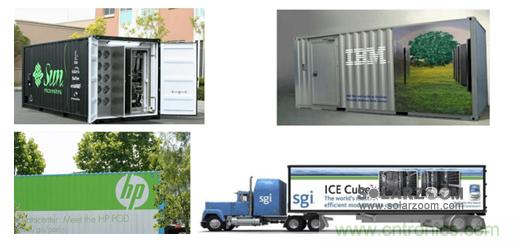 通訊行業中的集裝箱數據中心最早源於Sun在2006年提出的“黑盒子計劃”,其采用20尺的標準集裝箱,內部放置服務器和供電設備等,此設計優勢明顯,並且很快成為了行業的熱點,如今,IBM、HP、穀歌、思科、微軟等巨頭紛紛涉足,產品更是應用於世界各地,包括沙漠、沿海地區,其應用場合與光伏產品類似。
