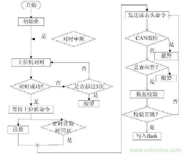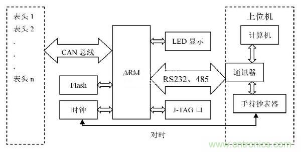 集中器通過CAN控製器發送讀表命令信號到總線上,每個表頭根據讀表命令將采集的信號通過CAN總線發送到集中器。集中器將采集的信號存儲在flash芯片中。上位機通過串口發送讀數據信號到集中器,集中器就把存儲在flash中的數據傳送給上位機。