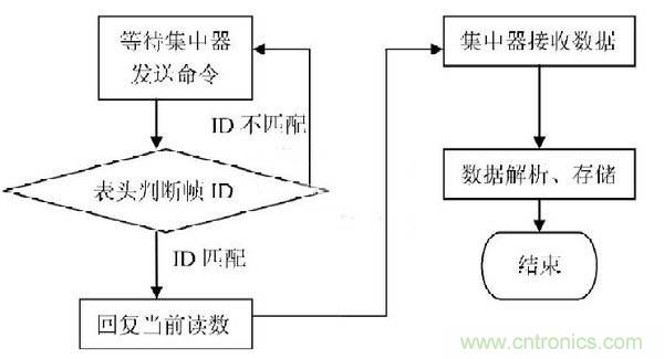 集中器發送CAN數據命令包到CAN總線,表頭根據各自的ID選擇接收讀表命令後發送應答數據到CAN總線上。