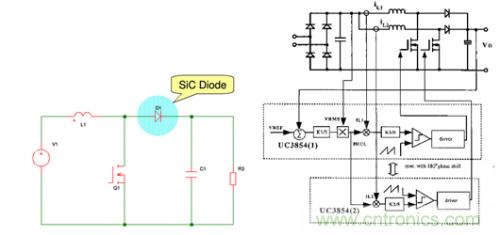 因為SiC器件的特性,SiC二極管的反向恢複時間接近0,因此開關損耗很低。將SiC用於PFC中可以帶來的好處是:高頻化、在較高的開關頻率下依然可以得到較低的開關損耗,電感的體積可以減小,同時還提高了功率密度。