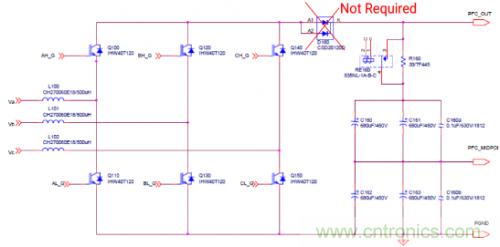 在六管組成三相VIENNA拓撲的PFC,采用全6管SiC的MOSFET,可以省掉快恢複二極管,如下圖3所示: