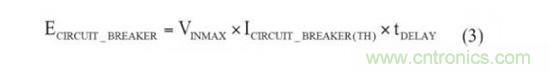 所suo選xuan保bao護hu控kong製zhi器qi也ye許xu具ju有you一yi個ge故gu障zhang安an全quan斷duan路lu器qi的de電dian流liu閥fa,從cong而er觸chu發fa瞬shun時shi輸shu入ru斷duan開kai。斷duan路lu器qi的de能neng量liang計ji算suan與yu短duan路lu情qing況kuang下xia相xiang類lei似si,不bu過guo,保bao護hu控kong製zhi器qi會hui設she定ding一yi個ge不bu同tong的de電dian流liu閥fa值zhi。MOSFET上有可能出現的最差情況能量由控製器的響應或延遲時間計算得出。