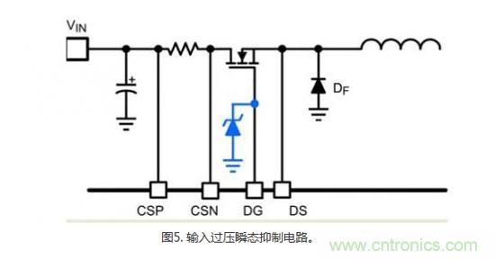 需牢記的一點是,雖然將MOSFET用於保護功能可實現對湧入或故障情況的快速響應,但是你應該在MOSFET的de輸shu出chu端duan上shang執zhi行xing一yi個ge適shi當dang的de電dian壓ya緩huan衝chong,以yi確que保bao用yong於yu保bao護hu功gong能neng的de器qi件jian不bu會hui使shi下xia遊you電dian路lu出chu現xian問wen題ti。在zai升sheng壓ya電dian路lu中zhong,保bao護hu器qi件jian之zhi後hou出chu現xian的de第di一yi個ge直zhi插cha式shi組zu件jian是shi原yuan邊bian電dian感gan器qi。續xu流liu二er極ji管guan可ke以yi管guan理li保bao護huMOSFET與電感器之間的任何電壓振鈴,它隻有在保護開關迅速關閉時才會導電,特別是在斷路器位於電感器左側時(圖5)。