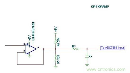 我選用OPA836作為放大器,因其可使用與ADS7881相同的電源。使用 +5V 電壓供電,我們可在電壓保持在輸入動態範圍內的同時,最大限度降低 ADC 及其驅動器功耗。