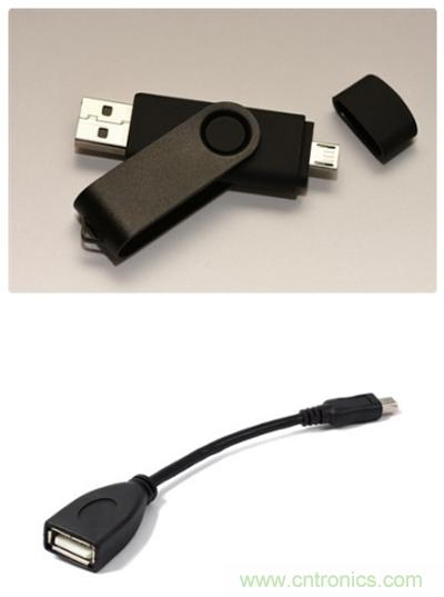 圖1:USB OTG驅動器(左)和USB連接線(右)