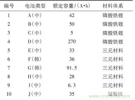 【導讀】依據GB/T31484GB/T31485GB/T31486檢測標準,分別選取國內外不同材料不同封裝形式(軟包方形硬殼和圓柱形卷繞)的電池樣品進行對標分析,其中包括比較成熟的國內4款磷酸鐵鋰蓄電池3款三元材料電池和1款錳酸鋰材料電池,以及2款日韓係三元材料電池。