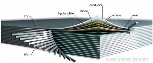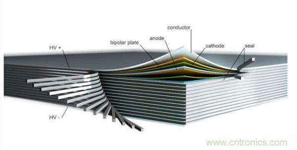 如今,電池儼然成為了決定電動車未來的核心部件,這也不難理解那麼多的電池製造商在電池技術上絞盡腦汁、期望有所重大突破,並且製定各種野心勃勃發展目標,例如:將電池係統的能量密度從250Wh/L左右提升到500Wh/L、同時大幅度降低生產成本。一方麵,電池材料需要進一步優化,提高電池能量密度,另一方麵,電池空間體利用需要提高、減小有限空間內的非活性材料。現有的電池封裝package方式造成了大量的體積被非電池活性材料占據,無法充分利用有限的電池空間。為了實現這個目標, IAV公司與 Thyssenkrupp AG和Fraunhofer Institute for Ceramic Technologies and Systems(IKTS)一起合作開發汽車底盤電池集成項目( EMBATT:chassis-embedded energy),直接將電池嵌入到汽車底盤,大幅度減少電池本身的結構件所占據的體積,達到提高能量密度Wh/L的目標。EMBATT概念的中心思想是采用雙極性bipolar鋰離子電池。在這個合作開發項目中,IAV主要負責車輛開發,包括車輛概念、測量安全、電池布局和設計、控製軟件標定。IKTS主要負責定製化電池材料和電極的製造加工技術。Thyssenkrupp AG主要負責後期的電池生產。
