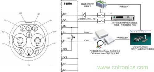 · K5、K6控製單元:驅(qu)動(dong)上(shang)述(shu)繼(ji)電(dian)器(qi),與(yu)協(xie)議(yi)模(mo)擬(ni)器(qi)配(pei)合(he),在(zai)充(chong)電(dian)過(guo)程(cheng)進(jin)入(ru)充(chong)電(dian)配(pei)置(zhi)階(jie)段(duan)時(shi)實(shi)現(xian)繼(ji)電(dian)器(qi)吸(xi)合(he),進(jin)而(er)使(shi)充(chong)電(dian)樁(zhuang)檢(jian)測(ce)到(dao)模(mo)擬(ni)電(dian)池(chi)電(dian)壓(ya)。本(ben)文(wen)推(tui)薦(jian)選(xuan)擇(ze)致(zhi)遠(yuan)電(dian)子(zi)的(de)NDAM-9000與NDAM-2808組成的控製單元,可以通過網口與CANScope實現聯動。