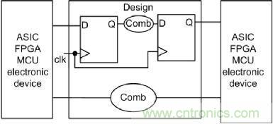基本的電子係統如圖 1所示,一般自己的設計都需要時序分析,如圖 1所示的Design,上(shang)部(bu)分(fen)為(wei)時(shi)序(xu)組(zu)合(he)邏(luo)輯(ji),下(xia)部(bu)分(fen)隻(zhi)有(you)組(zu)合(he)邏(luo)輯(ji)。而(er)對(dui)其(qi)進(jin)行(xing)時(shi)序(xu)分(fen)析(xi)時(shi),一(yi)般(ban)都(dou)以(yi)時(shi)鍾(zhong)為(wei)參(can)考(kao)的(de),因(yin)此(ci)一(yi)般(ban)主(zhu)要(yao)分(fen)析(xi)上(shang)半(ban)部(bu)分(fen)。在(zai)進(jin)行(xing)時(shi)序(xu)分(fen)析(xi)之(zhi)前(qian),需(xu)要(yao)了(le)解(jie)時(shi)序(xu)分(fen)析(xi)的(de)一(yi)些(xie)基(ji)本(ben)概(gai)念(nian),如(ru)時(shi)鍾(zhong)抖(dou)動(dong)、時鍾偏斜(Tskew)、建立時間(Tsu)、保持時間(Th)等。時序分析也就是分析每一個觸發器(寄存器)是否滿足建立時間/保持時間,而時序的設計的實質就是滿足每一個觸發器的建立時間/保持時間的要求。