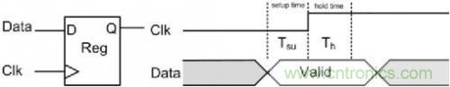 建立時間(Setup Time)常用Tsu表(biao)示(shi),指(zhi)的(de)是(shi)在(zai)觸(chu)發(fa)器(qi)的(de)時(shi)鍾(zhong)信(xin)號(hao)上(shang)升(sheng)沿(yan)到(dao)來(lai)以(yi)前(qian),數(shu)據(ju)和(he)使(shi)能(neng)信(xin)號(hao)穩(wen)定(ding)不(bu)變(bian)的(de)時(shi)間(jian),如(ru)果(guo)建(jian)立(li)時(shi)間(jian)不(bu)夠(gou),數(shu)據(ju)將(jiang)不(bu)能(neng)在(zai)這(zhe)個(ge)時(shi)鍾(zhong)上(shang)升(sheng)沿(yan)被(bei)打(da)入(ru)觸(chu)發(fa)器(qi),使(shi)能(neng)信(xin)號(hao)無(wu)效(xiao),也(ye)就(jiu)是(shi)說(shuo)在(zai)這(zhe)個(ge)時(shi)鍾(zhong)周(zhou)期(qi)對(dui)數(shu)據(ju)的(de)操(cao)作(zuo)時(shi)無(wu)效(xiao)的(de);保持時間(Hold Time)常用Th表biao示shi,指zhi的de是shi在zai觸chu發fa器qi的de時shi鍾zhong信xin號hao上shang升sheng沿yan到dao來lai以yi後hou,數shu據ju和he使shi能neng信xin號hao穩wen定ding不bu變bian的de時shi間jian,如ru果guo保bao持chi時shi間jian不bu夠gou,數shu據ju同tong樣yang不bu能neng被bei打da入ru觸chu發fa器qi,對dui數shu據ju的de操cao作zuo同tong樣yang是shi無wu效xiao的de,使shi能neng信xin號hao無wu效xiao。數shu據ju要yao能neng穩wen定ding傳chuan輸shu,就jiu必bi須xu滿man足zu建jian立li時shi間jian和he保bao持chi時shi間jian的de關guan係xi,圖tu 4標識了它們間的關係。