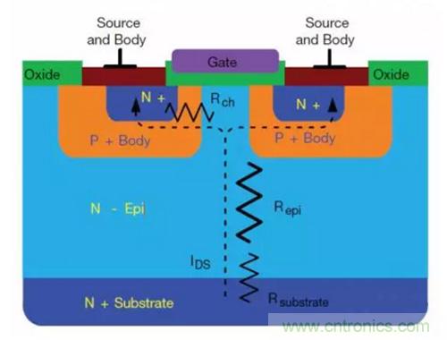 圖2:平麵式MOSFET的電阻性元件