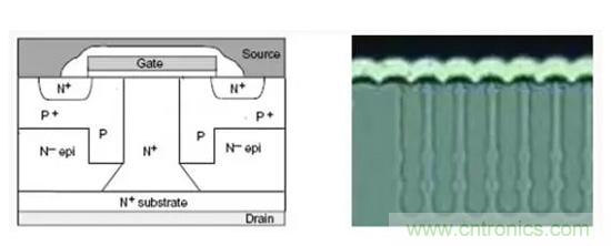 通常,高壓的功率MOSFET采用平麵型結構,其中,厚的低摻雜的N-的外延層,即epi層,用來保證具有足夠的擊穿電壓,低摻雜的N-的epi層的尺寸越厚,耐壓的額定值越大,但是其導通電阻也急劇的增大。導通電阻隨電壓以2.4-2.6次方增長,這樣,就降低的電流的額定值。為了得到一定的導通電阻值,就必須增大矽片的麵積,成本隨之增加。如果類似於IGBT引yin入ru少shao數shu載zai流liu子zi導dao電dian,可ke以yi降jiang低di導dao通tong壓ya降jiang,但dan是shi少shao數shu載zai流liu子zi的de引yin入ru會hui降jiang低di工gong作zuo的de開kai關guan頻pin率lv,並bing產chan生sheng關guan斷duan的de電dian流liu拖tuo尾wei,從cong而er增zeng加jia開kai關guan損sun耗hao。