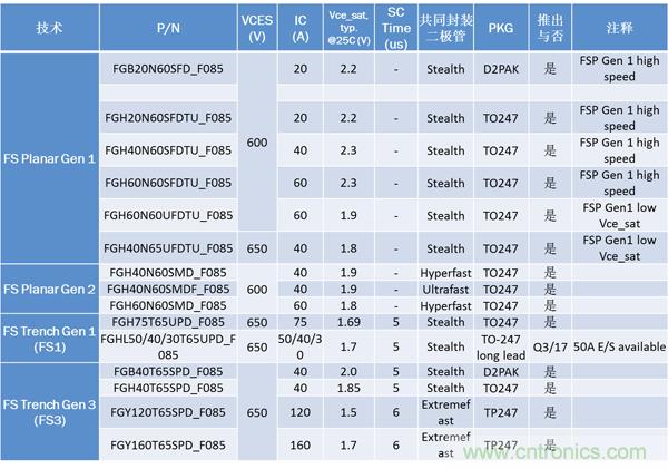 表1:安森美半導體用於HEV的分立IGBT陣容