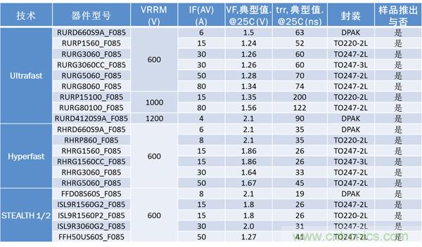 表2:安森美半導體汽車級高壓整流器陣容