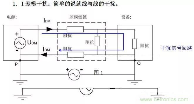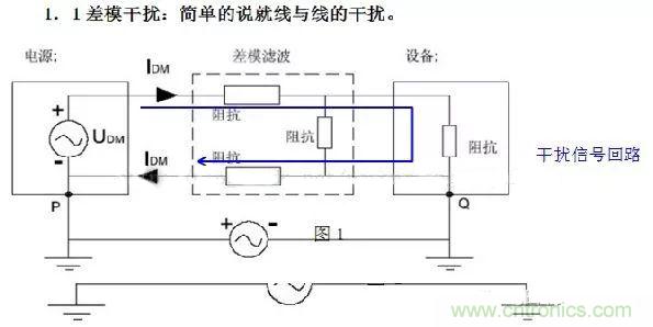 2.差模幹擾(Differential-mode Interference):兩導線上的幹擾電流,振幅相等,方向相反稱為差模幹擾。(任何兩個載流體之間不希望有的電位差)