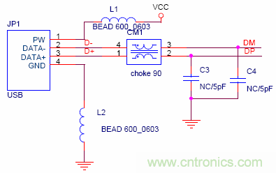 USB 高速運行會在DM/DP信號線上產生很強的共模幹擾