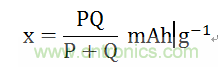 假如正極容量為P mAh/g,負極容量為Q mAh/g,電池的理論比容量x滿足下式