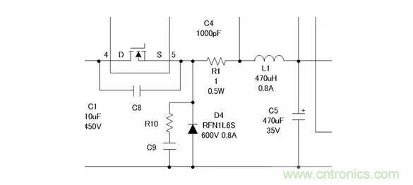 因此,應該選擇電感值470µH、電感電流0.8A以上的電感。必須要注意的是,一定要通過實際裝機來確認電感電流,確保是電感不飽和的。