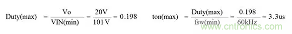 假設最大輸入電壓264VAC時的最小導通時間為1µs,則: