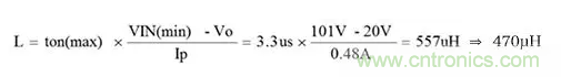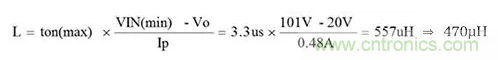 首先計算電感值。設VIN為101V。假設90VAC條件下,峰值電壓為1.41倍,餘量為20%。