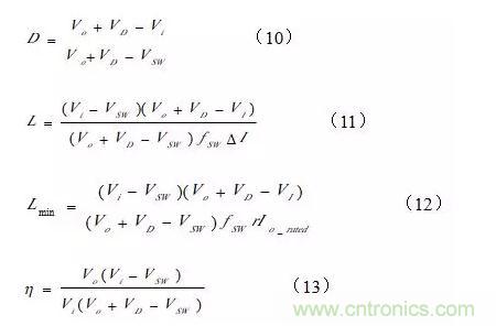 下麵以Buck型開關電源為例推導占空比、電感值和效率公式。