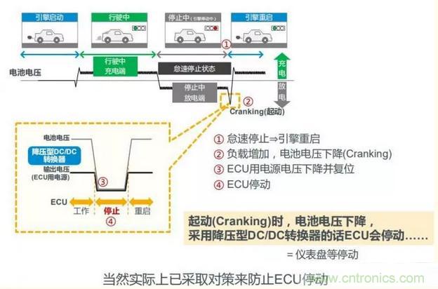 現在市麵采用的都是降壓型DC/DC轉換器,在車子啟動時,電池電壓的下降會使得車載電子控製單元(Electronic Control Unit, 以下簡稱“ECU”)停動。要想使ECU穩定工作,就需要升降壓轉換器。