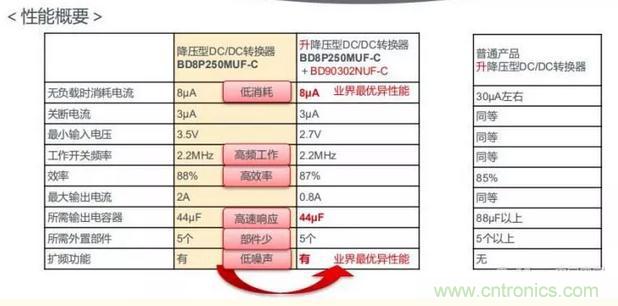 特點1:實現升降壓電源業界最優異的低消耗電流和響應性能