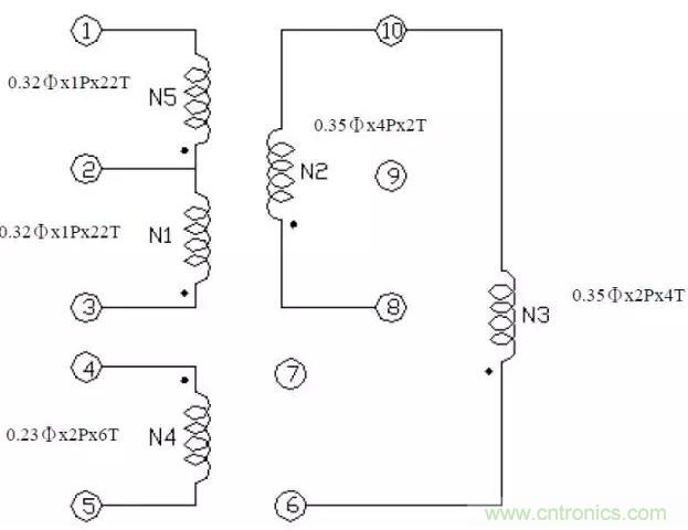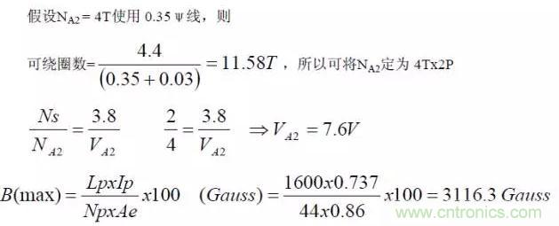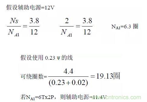 依據變壓器的圈比關係,可決定輔助電源的圈數及電壓。