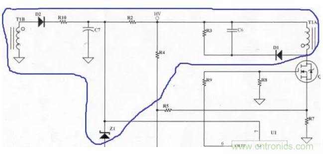 D5在截止的瞬間會有spike產生,若spike超過二極管(D5)的耐壓值,二極管會有被擊穿的危險,調整snubber可適當的減少spike的電壓值,除保護二極管外亦可改善EMI,R17一般使用1/2W的電阻,C10一般使用耐壓500V的陶質電容,snubber調整的過程(264V/63Hz)需注意R17,C10是否會過熱,應避免此種情況發生。