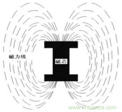 正如上所指,對於一個開環磁路的電感(以工字電感為例),其磁力線的主磁路是空氣。如圖1。