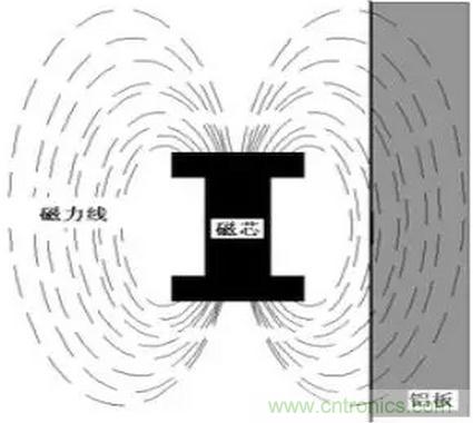 當在一個工字電感旁邊放置鋁板時。如圖2所示,由於鋁板屬於逆磁性材料,其磁阻很大。相當加鋁板時,原先的磁通麵積減小。