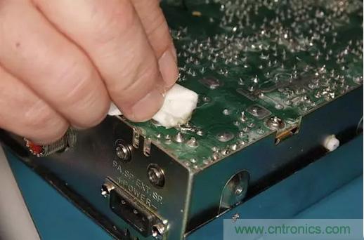 接下來修剪多餘的電線至焊點處,並用助焊劑清潔劑對焊點進行清理。