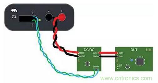 Otii工具還支持使用SENSE+和SENSE-輸入,通過四端子檢測方法測量輸入和輸出電壓。這裏不討論這種方法,原因是電流相當低,而且連接Otii所用的電纜很短,電阻很小。