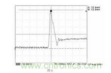 圖中所示的是實際測試的PFC 升壓二極管關斷瞬間的反向恢複電流(不加吸收的情況下),在圖4 中,該反向恢複電流主要通過C6、VD1、VT2 構成回路,形成差模輻射,另外,由於由於引線電感的存在,很小一部分的電流會通過散熱器與開關管VT2 之間的耦合電容C7 向外流,形成共模輻射。