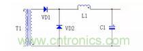 DC/DC 的整流二極管和續流管的反向恢複電流會導致二極管的反向電壓出現很高的電壓尖峰,下圖 7 是正激電路的輸出濾波電路。