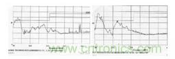 下麵圖 9 是采取在PFC 開關管散熱器對PFC 輸出地加電容與不加電容輻射強度的對比。