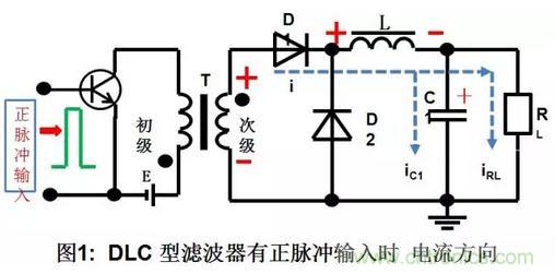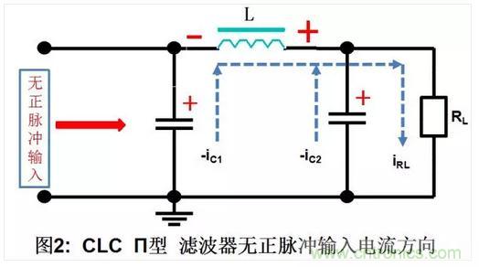 a.輸入正脈衝時,先給C1充電,充電電流為ic1,迅速充到脈衝的峰值電壓Vi,同時電感器L中也有線性增長的電流,並在L中儲存了磁能,隨著電流的增長,儲存的磁能越來越多,電容器C2通過電感L也充上了電壓,充電電流為ic2,C2和C1上的電壓基本相等,負載RL中的電流IRL也是由輸入脈衝供給。
