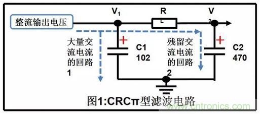 a.經整流輸出的電壓,首先經過C1電容器的濾波,將大部分交流成分濾除,經C1後的電壓,再加到由RL和C2夠成的RC濾波電路中,電容C2進一步對交流成分進行濾波。