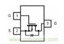 仔細看看你會發現,這兩個圖似乎有差別,對了,這實際上是兩種不同的增強型場效應管,第一個那個叫N溝道增強型場效應管,第二個那個叫P溝(gou)道(dao)增(zeng)強(qiang)型(xing)場(chang)效(xiao)應(ying)管(guan),它(ta)們(men)的(de)的(de)作(zuo)用(yong)是(shi)剛(gang)好(hao)相(xiang)反(fan)的(de)。前(qian)麵(mian)說(shuo)過(guo),場(chang)效(xiao)應(ying)管(guan)是(shi)用(yong)電(dian)控(kong)製(zhi)的(de)開(kai)關(guan),那(na)麼(me)我(wo)們(men)就(jiu)先(xian)講(jiang)一(yi)下(xia)怎(zen)麼(me)使(shi)用(yong)它(ta)來(lai)當(dang)開(kai)關(guan)的(de),從(cong)圖(tu)中(zhong)我(wo)們(men)可(ke)以(yi)看(kan)到(dao)它(ta)也(ye)像(xiang)三(san)極(ji)管(guan)一(yi)樣(yang)有(you)三(san)個(ge)腳(jiao),這(zhe)三(san)個(ge)腳(jiao)分(fen)別(bie)叫(jiao)做(zuo)柵(zha)極(ji)(G)、源極(S)和漏極(D),mpn中的貼片元件示意圖是這個樣子: