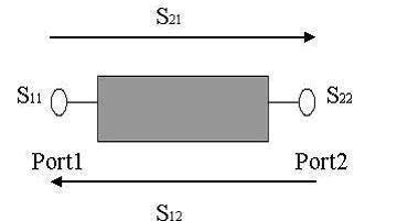 下麵以二端口網絡為例說明各個S參數的含義,如圖所示。